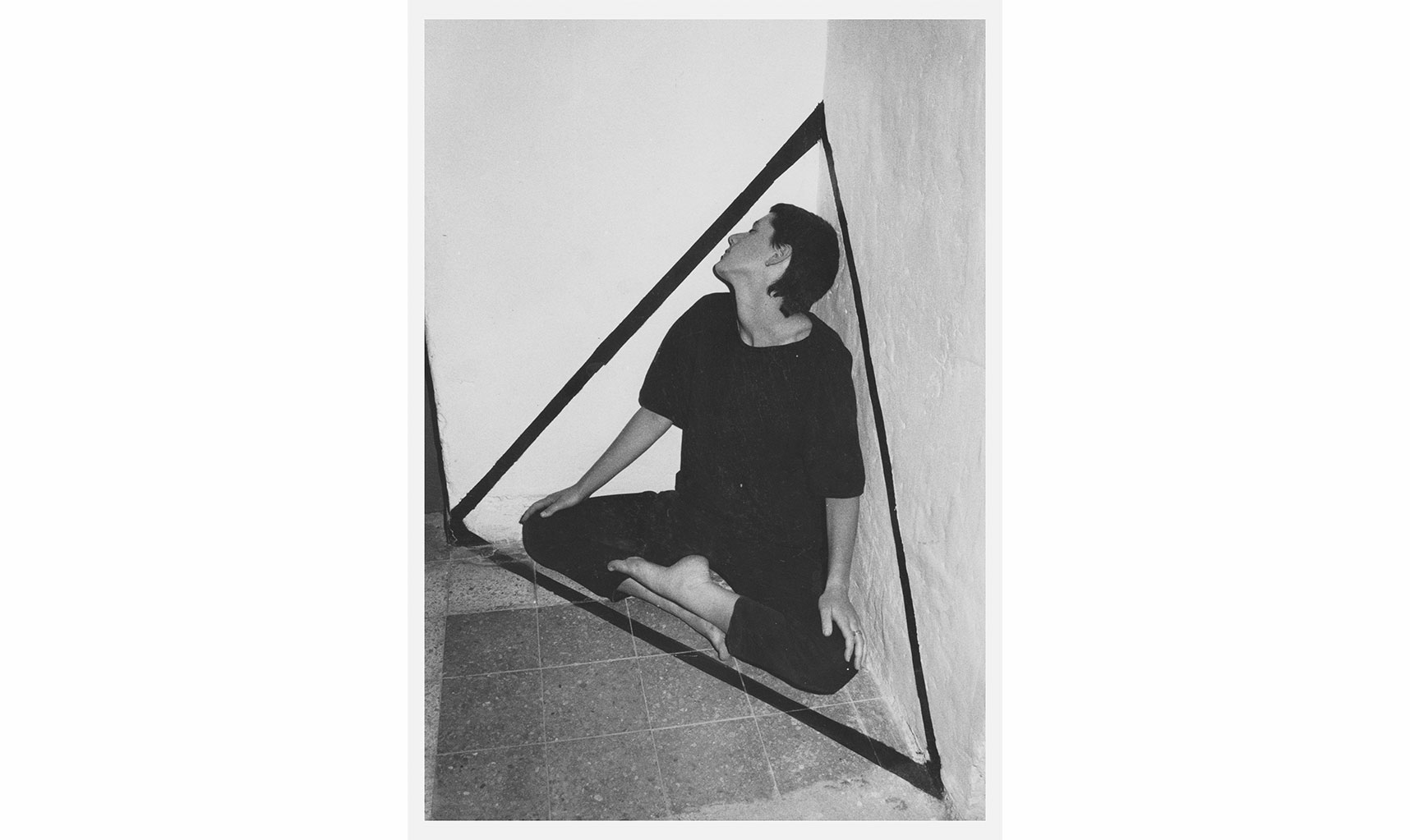 Using black paint and the existing architecture of a room corner, I constructed an imaginary, geometric, pyramid-shaped cage to imprison my lived body—flesh and mind. This early work investigates how the minimal necessary—an abstract visual cue—can generate a sense of confinement. It explores the power of intangible signs to convey ideological messages and cultural norms, highlighting tensions between rigid structures and embodied experience, the artificial and the human body.