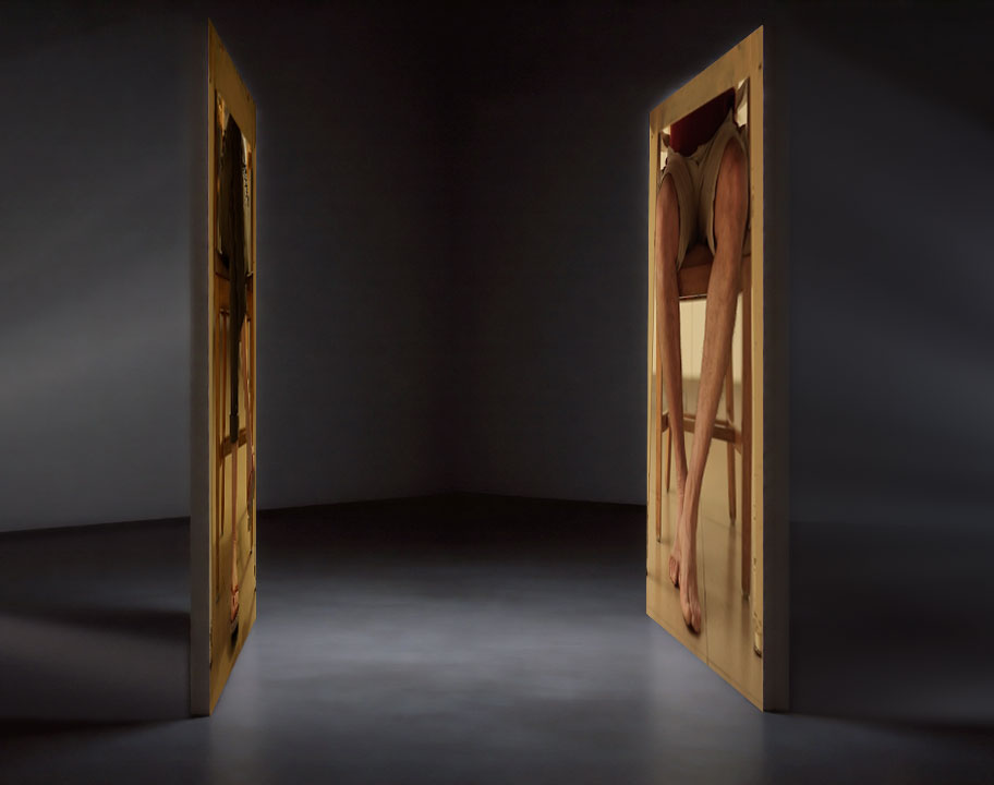 The video installation traps the viewer in an unsettling, silent scene set on an ordinary evening, situated beneath the dinner table of an ordinary couple. What is happening up there? Anger, stress, a quarrel? Calm silence? Or perhaps the couple’s parallel lives, each immersed in their own world, eyes glued to their mobile phones?