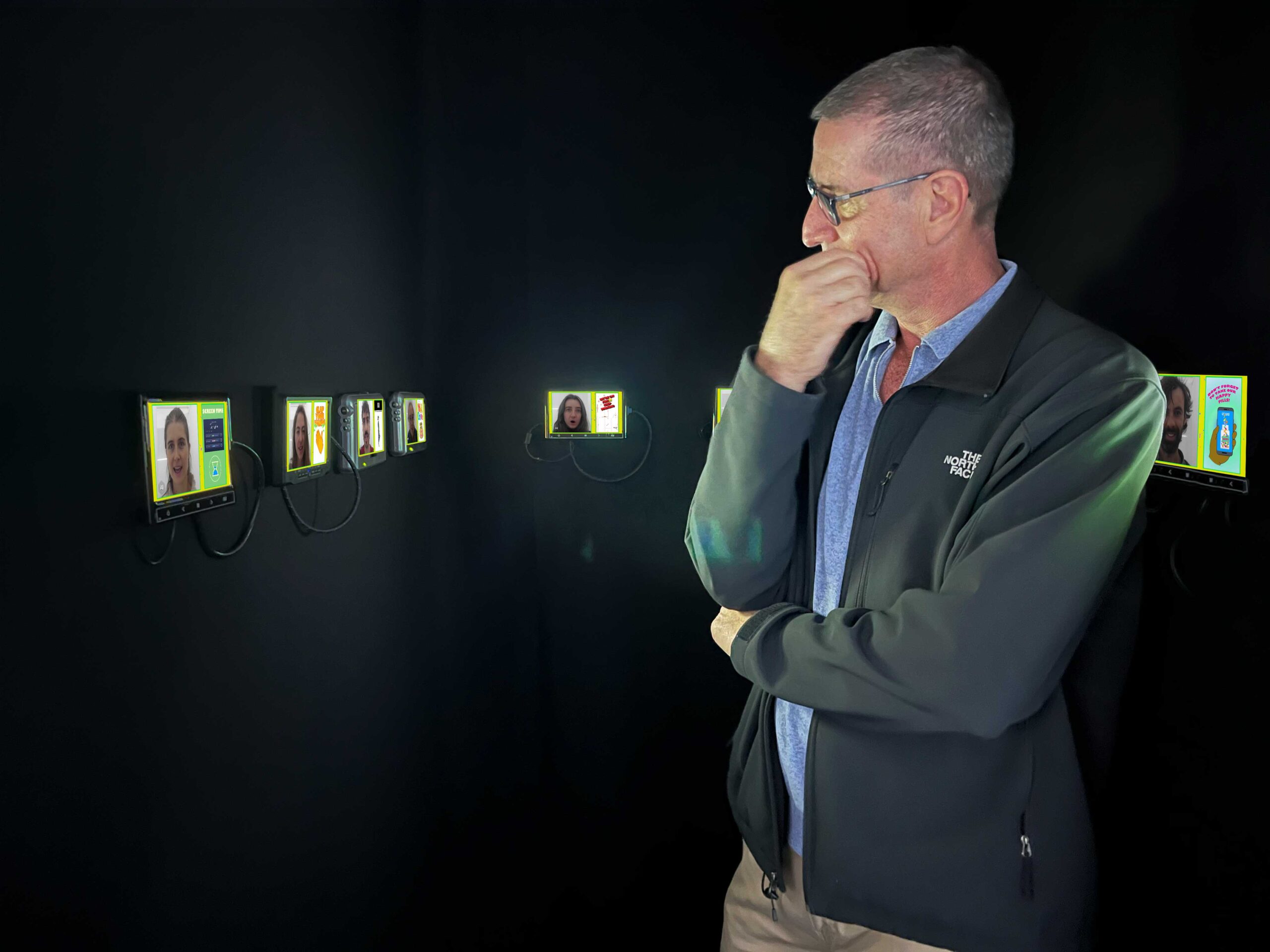 You have reached your destination is a self-surveillance interactive installation that stems from my research on the escalating usage of contemporary self-tracking devices and their effects on our self-perception, society, and culture. We have been using self-tracking applications for two decades to measure, summarise, and evaluate ourselves. Upon entering the installation space monitored by webcams that harness the power of AI technology, Computer Vision, robotics, and media design, the visitor is invited to take a selfie. This piece of data is processed by deep fake technology to manipulate one’s actions in the gallery space. The spectator, now an active “feeding-the-system” participant, gets praised, directed, commanded, and urged to act by the non-human actors in this assemblage. You have reached your destination raises questions on free will, self-evaluation, authentic lived experience, and embodied knowledge by creating awareness of these new technologies’ power over our physical and mental behaviours. The project sheds light on the larger discourse of human-technology interaction, on the power-knowledge-control relationship, and on metanarratives in the age of late capitalism.